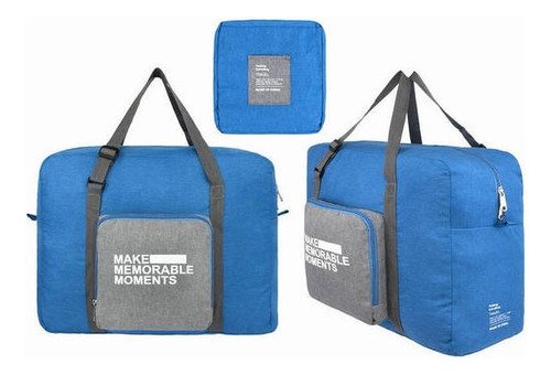 Bolso Plegable Viaje Impermeable Resistente Carry On Color Celeste Liso