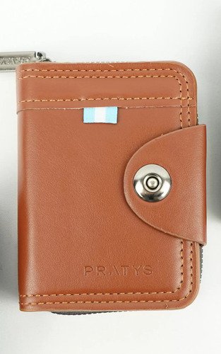 Billetera Azul Hombre Pratys Cuero Sintético 10 Tarjetas Cierre Seguro Liso