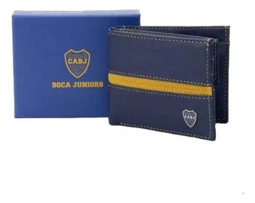 Billetera Boca Juniors Con Licencia Color Azul/amarillo Diseño De La Tela Cuero Ecológico