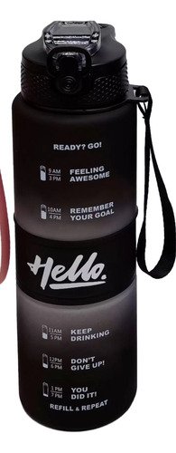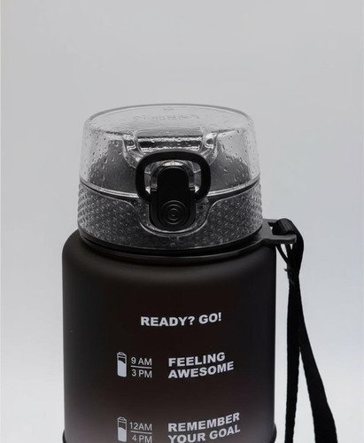 Botella Motivacional Agua Gimnasio 1 Litro Con Pico Goma Color Negro