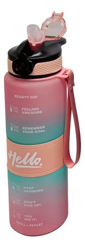 Botella Motivacional Agua Gimnasio 1 Litro Con Pico Goma Color Rosa