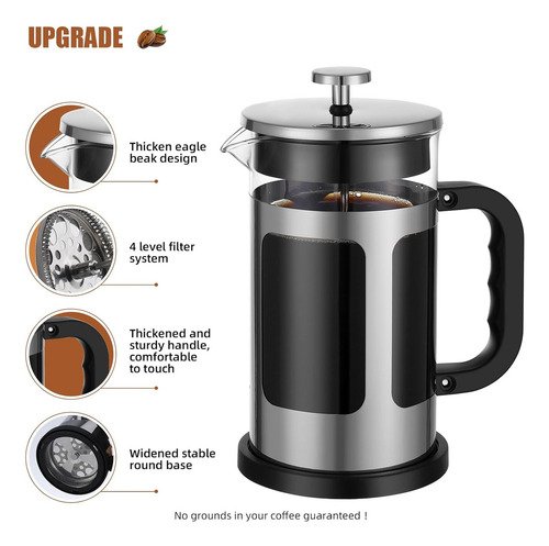 • Cafetera prensa francesa de 1000 ml – ideal para café, té o infusiones