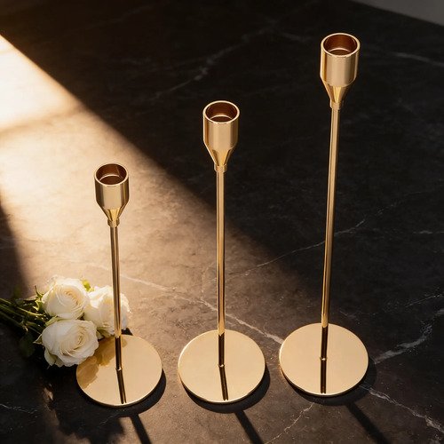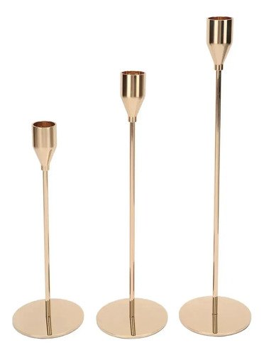 Set X3 Candelabros Portavelas Dorados Metal Decorativos Dorado