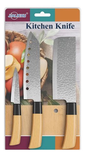 Set De 3 Cuchillos Cocina Japonesa Para Chef Madera