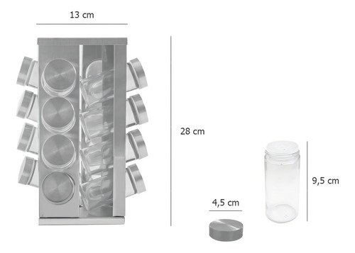 Especiero Condiment Giratorio X 16 Acero Inox Cuadrado