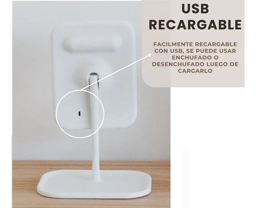 Espejo Maquillaje Con Pie Luz Led Tactil Plegable Usb Marco Blanco