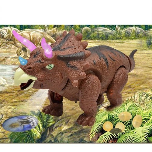 Figura de animal de juguete de dinosaurio triceratops para caminar y poner huevos con sonidos y luces realistas, movimiento real, poner huevos.