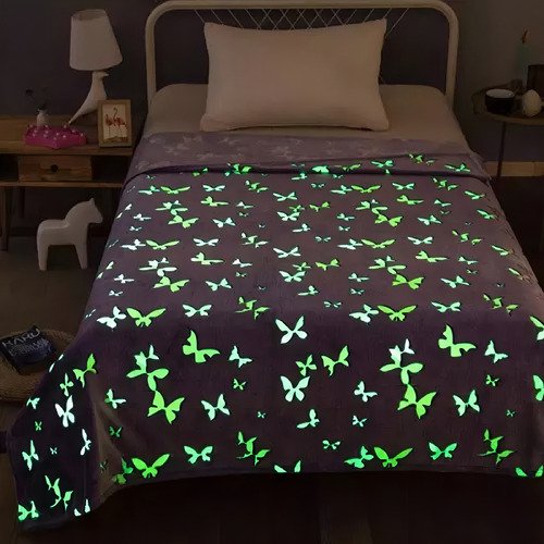 Manta Frazada Luminosa Soft Brilla En Oscuridad 1 1/2 Plaza Color Mariposas Diseño De La Tela Estampado