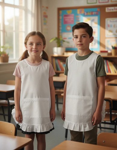 Guardapolvo Poncho Pechera Escolar Colegio Nena Nene Blanco Liso 8