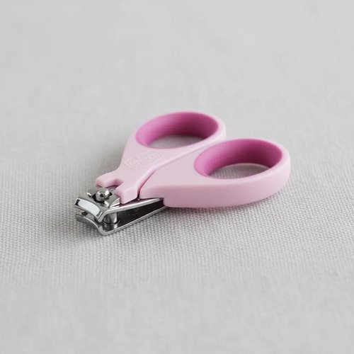 • Tijeras para el recién nacido con hojas curvadas, puntas redondeadas y tapa protectora.