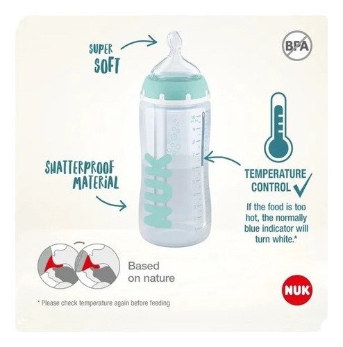 Nuk First Choice Anti-colic Professional Mamadera Bebe Control Temperatura 0-6 Meses 300ml Verde