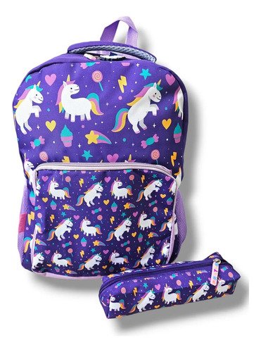 Mochila Escolar Colegio Nena Con Cartuchera Unicornio