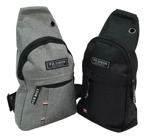 Morral Bandolera Bolso Mochila Cruzado 2 Cierres Color Gris Diseño De La Tela Liso