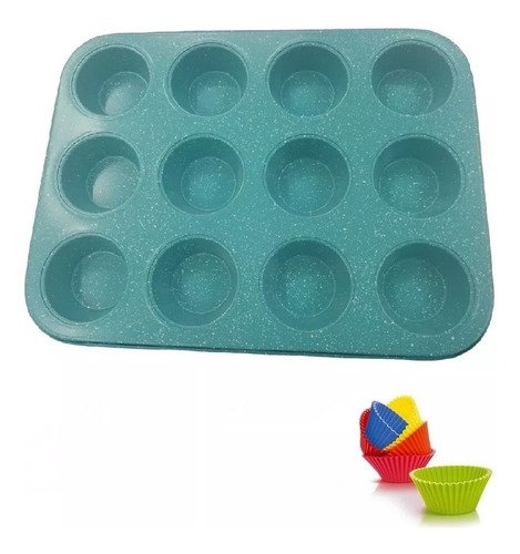 Molde Muffins Cupcake 12 Unidades + Pirotines De Silicona