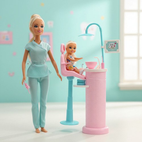 Muñeca Dentista Tiny 30cm Articulada Con Accesorios