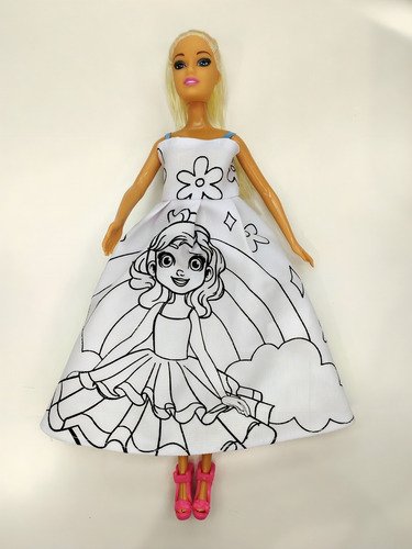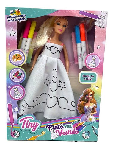 Muñeca Infantil Tiny Y Su Vestido Para Pintar Fibras Colores