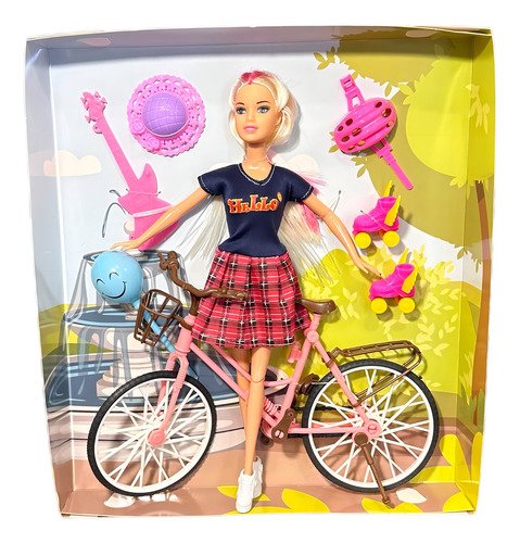 Muñeca Tiny Fantasy Con Bicicleta Remera Azul