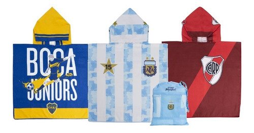 Toalla Poncho Infantil Argentina River Boca Mochila 70x140cm