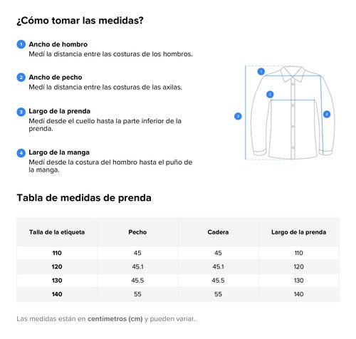 TALLE 120cm- para quienes miden hasta 1,20 metros
