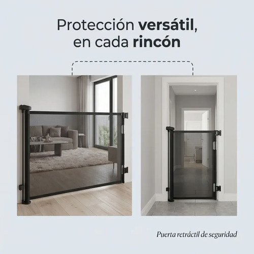 La Puerta Retráctil de Seguridad Megababy es la solución inteligente para proteger a bebés y mascotas en el hogar sin invadir espacios. Su diseño enrollable permite abrir y cerrar la barrera solo cuando la necesitás, manteniendo los ambientes ordenados y visualmente limpios.