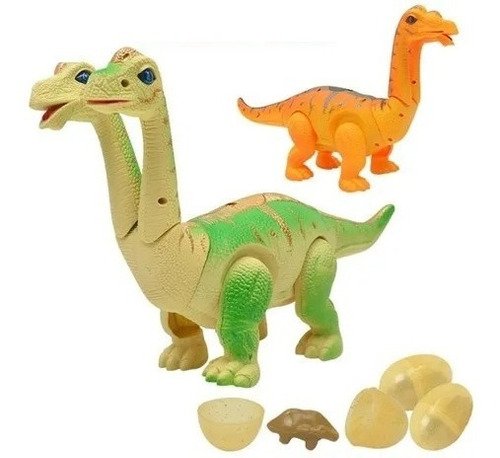 Juguete Dinosaurio 2 Cabezas Luz Sonido Camina Huevos 40 Cm