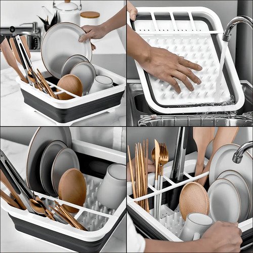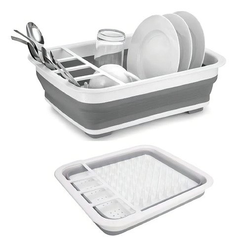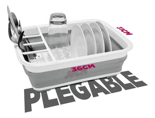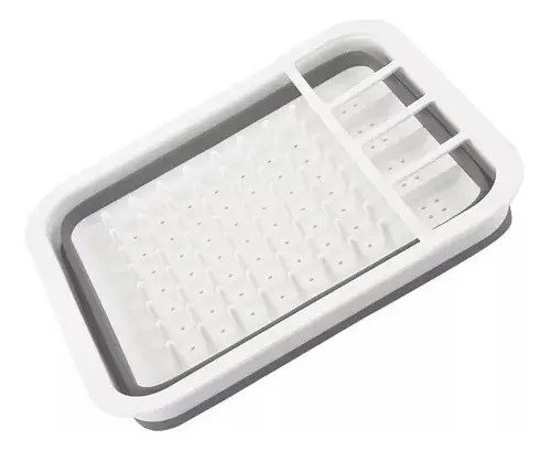 Secaplatos Piu Silicona Plegable Blanco Gris 10 Platos Con Cubiertero Blanco Con Gris