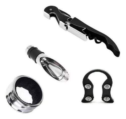 Set Accesorios Para Vino Sacacorcho Tapon Anillo Y Pico