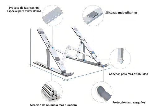 Soporte Base Notebook Universal Hasta 18 Aluminio Ergonomico Color Plateado Master Sale