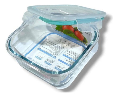 Recipiente DE VIDRIO HERMETICO CON TAPA DE COLOR CELESTE